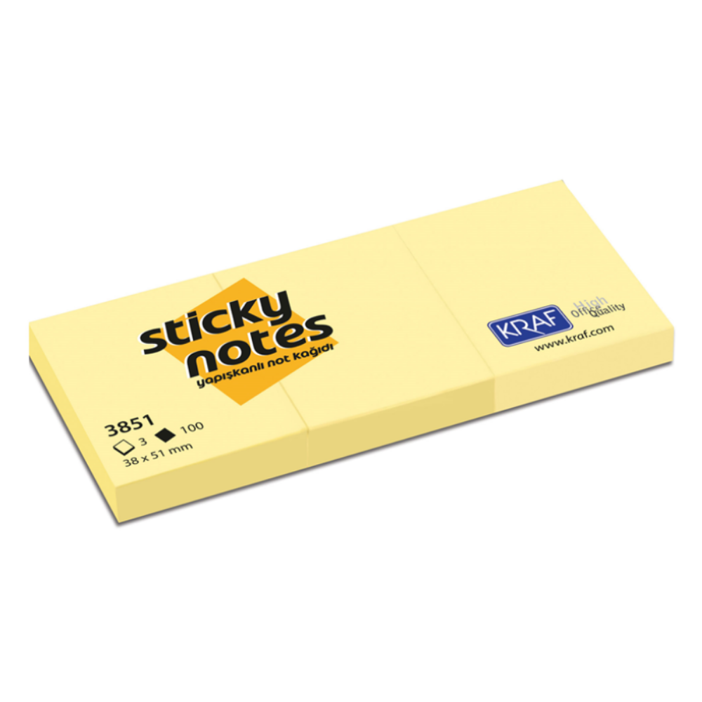 Kraf Yapışkanlı Not 38x51 Mm 100 Yaprak 3'lü Sarı için şimdi sipariş verin, rekabetçi fiyat ve hızlı teslimat avantajı ile siparişiniz kapınıza gelsin.