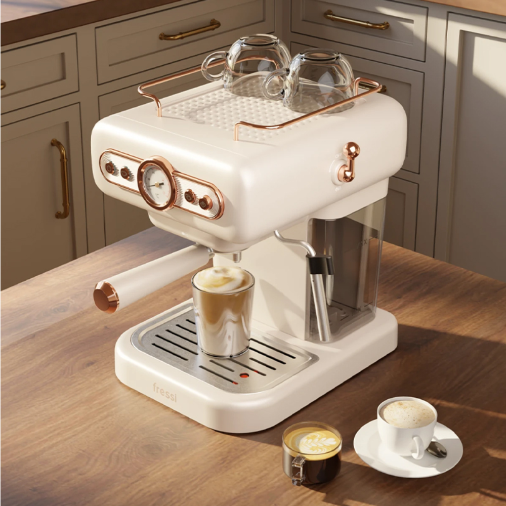Fressi EM-01 Ristretto Espresso Makinesi 1,2 Lt 20 Bar Krem – Evde Barista Kalitesinde Espresso Keyfi
