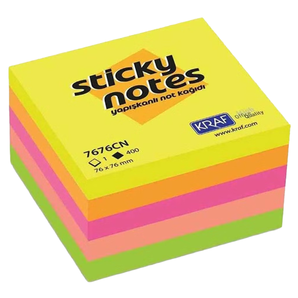 Kraf Yapışkanlı Not 76x76 400 Yaprak 5 Neon Renk, yoğun iş temposunda, okulda ya da evde not almayı daha pratik ve eğlenceli hale getirir. Canlı neon renkleri sayesinde notlarınız anında fark edilir, önemli bilgiler gözden kaçmaz. 76x76 mm standart ölçüsü, kısa ve net notlar için ideal kullanım alanı sunar.