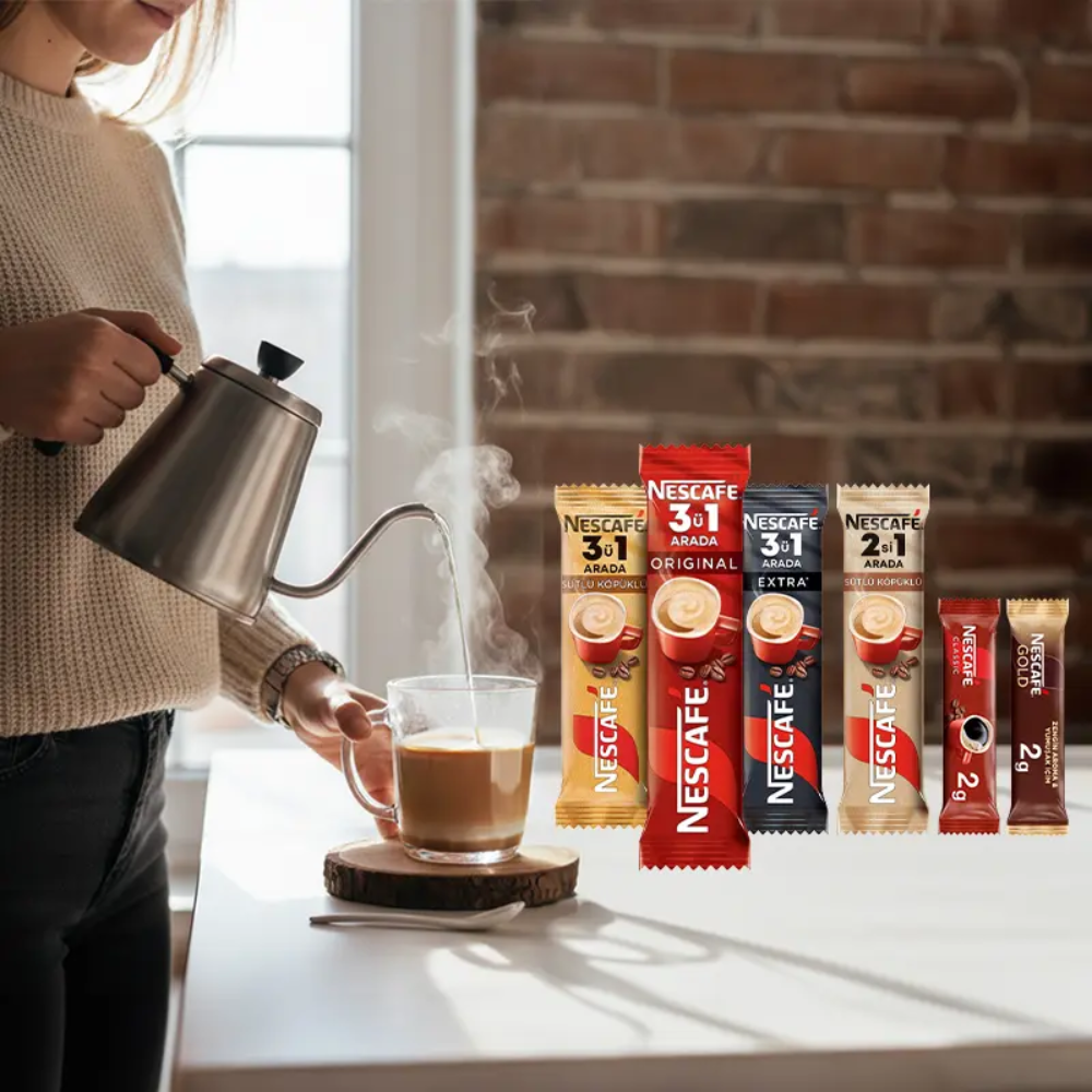 Nescafe Extra 3’ü 1 Arada 48’li paket, klasik Nescafe 3’ü 1 Arada lezzetini daha yoğun kahve tadıyla buluşturmak isteyenler için özel olarak formüle edilmiştir. Kahve, süt kreması ve şekerin dengeli karışımına ekstra kahve miktarı eklenerek her fincanda daha güçlü ve doyurucu bir lezzet sunar. 16,5 gramlık her stick, yoğun kahve sevenler için ideal kıvamı yakalar.