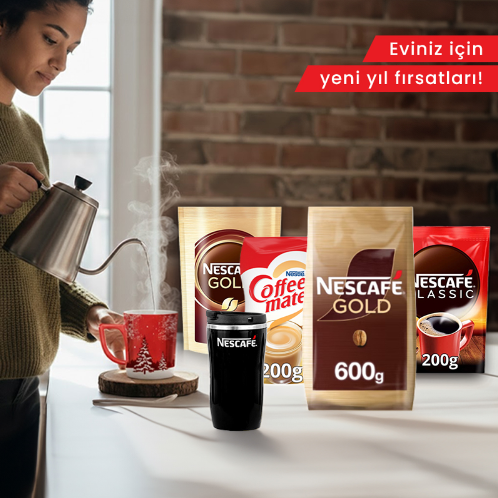 Ofisiniz ve eviniz için Nescafe Gold Eko paket Kahve 200 Gr 4'lü + Thermo Mug 2 Adet Hediyeli kaçırılmayacak fiyat ve hızlı teslimat avantajıyla.