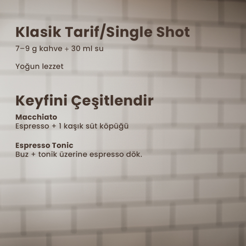 250 gramlık özel ambalaj, kahve çekirdeklerinin tazeliğini uzun süre korur. Hava almayan zipli ambalaj sistemi sayesinde aromalar hapsedilir ve her fincanda taze öğütülmüş kahve deneyimi sunar. Öğütülmemiş çekirdek kahve olması, kişiye özel demleme teknikleri için tam kontrol imkanı verir.