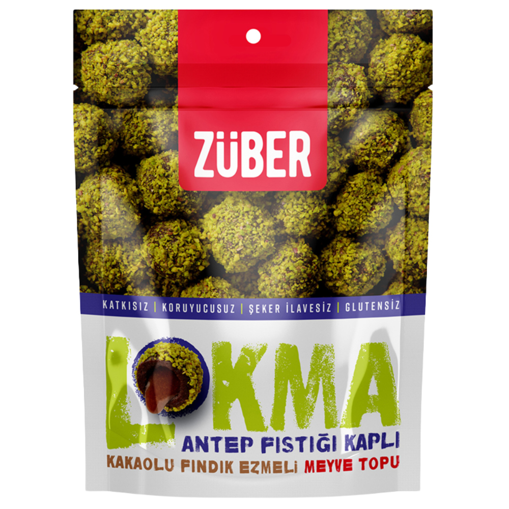 Züber Lokma Antep Fıstığı Kaplı Kakaolu Meyve Topu 96 Gr 12'li – Doğal ve Yoğun Lezzet